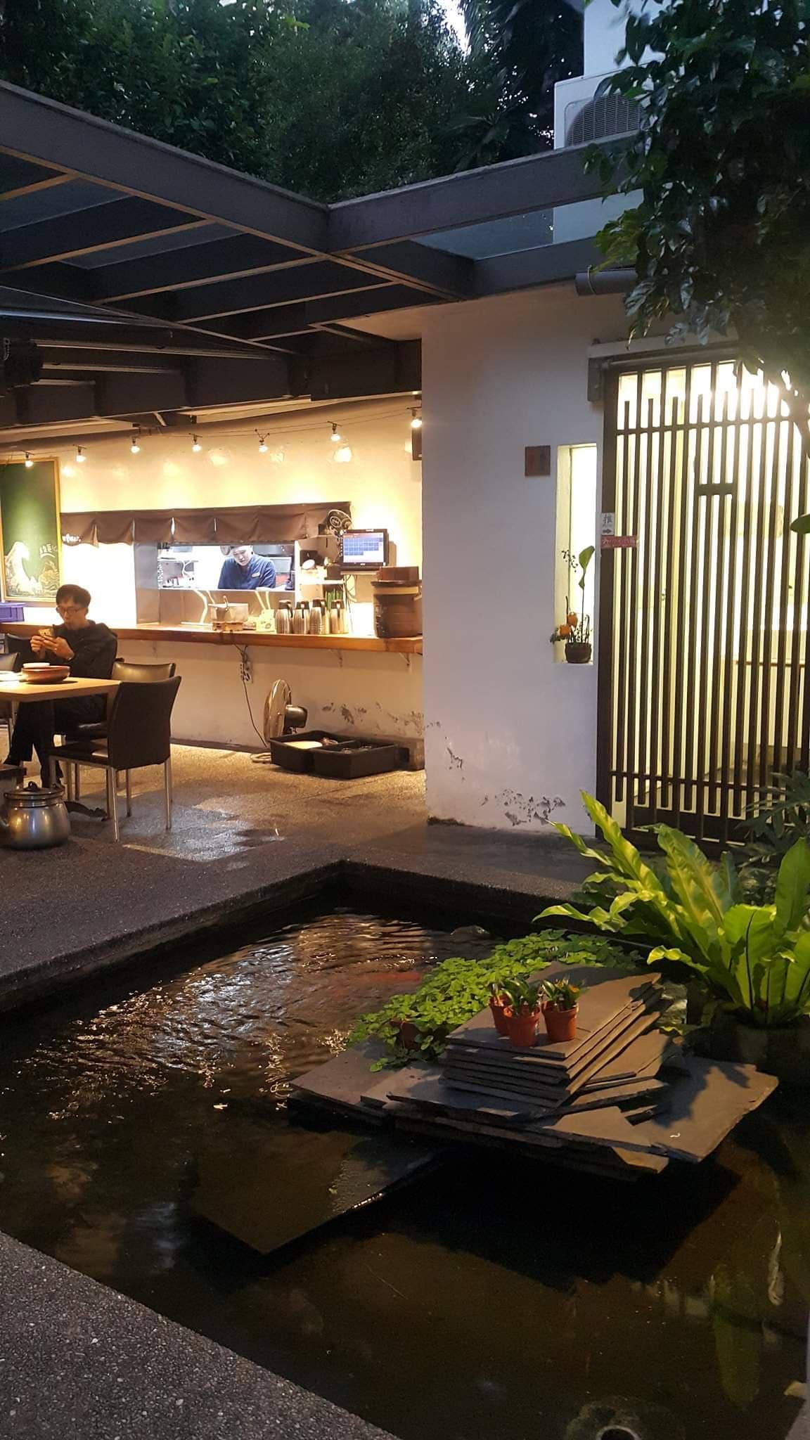 青田七六將原有的庭園水池再次活化利用,成為室外座位區的造景。