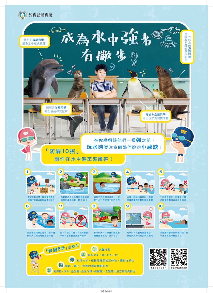 除現勘危險水域周遭設施外,本府教育處亦提供新竹縣危險水域文宣,以及教育部體育署「防疫十招、救溺五步」的廣告,請縣內各級學校於連假前向加強學生宣導防溺、水域安全觀念,防範溺水事件再次發生。