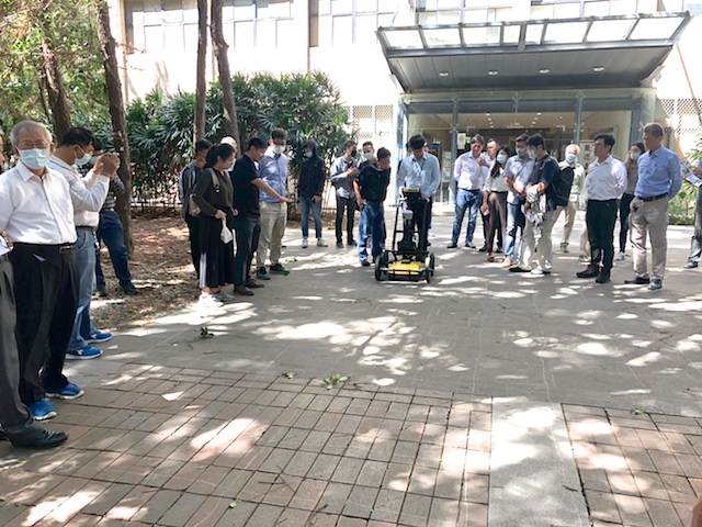 研討會先介紹明新科大土環系近年在透地雷達與光達系統產學應用概況,接著由中翰國際科技工程師鄒致瑋及明新科大防災技術研究中心專案經理吳晉維介紹類3D透地雷達基本原理及應用發展,現場並有實機展示與測試;下午接續由明新科大高教深耕計畫策略四USR Hub計畫主持人張崑宗講述雷射掃描原理與計畫應用實務,台灣儀器行技術總監高拔萃先生介紹Lidar-SLAM基本原理及應用發展、實機展示與測試。