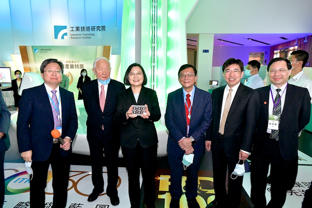 總統蔡英文在致詞中對工研院在防疫工作中的付出表示感謝,她指出,工研院積極投入口罩國家隊,發揮豐沛的機械組裝能量,是口罩產線快速建置的重要功臣;捷克參議長韋德齊也率團來工研院取經,工研院研發的「分子檢測疫開罐」1小時內就可以檢測出結果,讓韋德齊非常讚嘆,也對工研院發揮技術與研發能量,讓世界看到臺灣,表示肯定。蔡英文說,工研院成立40多年來,扮演集結人才、技術、資源、開拓新領域,帶領臺灣科技研發實力不斷突破,最重要的驅動力。此外,工研院也積極促成南臺灣科技聚落的成形,扮演鏈結科技市場與資本市場重要的橋樑,落實產創條例,首創無形資產融資成功的案例,讓智慧財產權發揮更大的價值。她也期許,後疫情時代,臺灣成為全球供應鏈不可或缺的關鍵力量,期望工研院以堅實的科技,創新的能量,繼續帶領臺灣升級轉型。