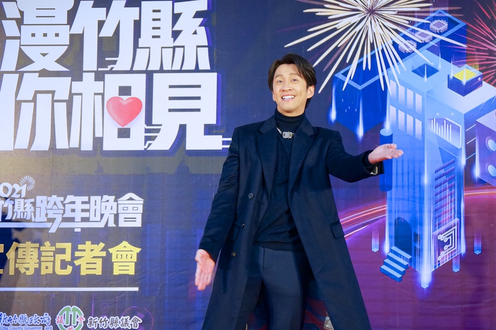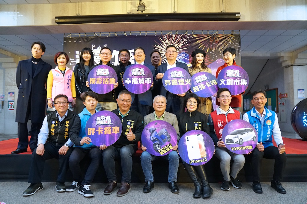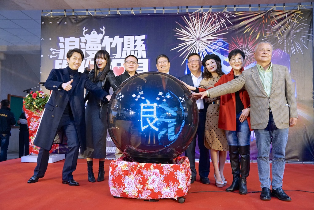 新竹縣長楊文科15日下午在縣府大廳舉辦的「浪漫竹縣 與你相見」新竹縣跨年晚會宣傳記者會,與金曲歌姬孫盛希、模仿男神陳漢典及台語天后張涵雅、議長張鎮榮、新竹縣不動產開發商業同業公會理事長吳國寶等人,共同啟動led幻影彩球,預告睽違六年的新竹縣跨年晚會, 12月31日傍晚起將在新竹縣政府前廣場登場,邀請全國民眾和新竹縣民共襄盛舉,揮別新冠疫情以來的悶,迎向熱情、充滿希望的2021!