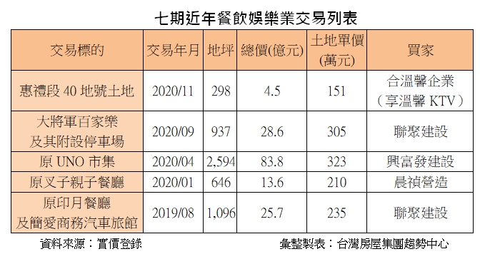 對此台灣房屋趨勢中心表示,先前從七期撤出的餐飲娛樂業,大多數是向地主租地,一旦地主將土地轉賣給建商獲利了結,不免面臨歇業或搬遷的命運;但若是由業者購地自建,則可減少地主賣地造成的營運變數,為長久經營打好根基。