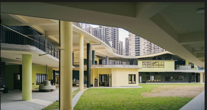 教育處表示,此次為中年級打造全新22間一般教室,2間專科教室,為流動型線條、各式形狀不一。整體校舍則延續一期工程理念,採低密度、開放的群落式建築,黃、綠、黑色為主體設計,讓孩子「走出教室、挑戰自己、認識自己」,屋簷設計成綿延不絕的山丘,搭配圍籬,打開校園圍牆與社區共享戶外空間,鼓勵孩子向外奔跑與探索。