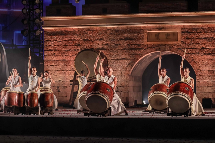 接著畫面帶到東門城,知名主持人黃子佼開場,介紹優人神鼓經典劇目《祭天》,並由林智堅市長擔任「主祭者」,誦念祈願文。緊接著就是優人神鼓為新竹市量身打造的全新劇目《新竹能量》,表演者搭配虛擬投影動畫,視覺與聽覺都帶來極大震撼。