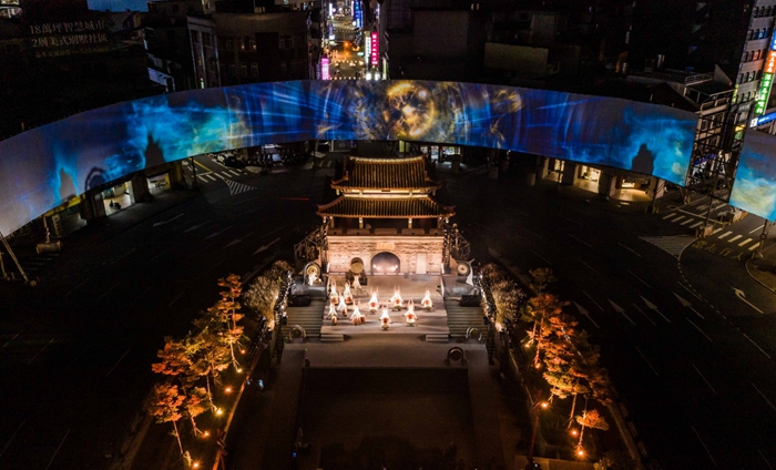 「新竹光臨藝術節-光之島」8/15(日)晚間盛大開演,200年古蹟東門城化身「環形劇場」,以180度投影動畫、燈光秀給民眾視覺震撼,直播上線五分鐘即破萬人觀賞。本次是疫情警戒降級後全國最大型的戶外直播式展演,專為「線上展演」設計,跨越地理限制讓民眾深入其境體驗。展演也由優人神鼓獻上經典劇目《祭天》、新竹市長林智堅擔任劇場「主祭者」,蔡英文總統也線上觀賞,透過影片現身讚聲。