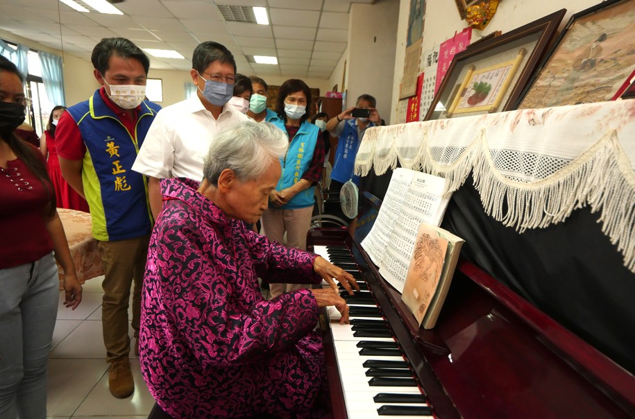 101歲林李清妹婆婆彈奏鋼琴歡迎大家的到來,接連彈了3首曲目,大家都為她喝采。