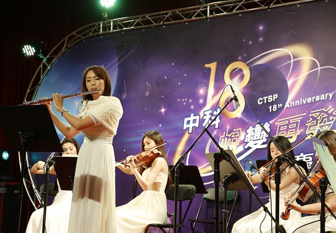 本次園慶音樂會的壓軸,十分難得的邀請到曾與多位國際級音樂大師合作並受邀至國外演出的台中市交響樂團擔綱,該樂團向致力於推動音樂幸福列車,將音樂帶進社區、學校,希望能將音樂的真、善、美,介紹給廣大的民眾,讓音樂與生活沒有界限,該團的菁英團員知名女高音傅孟倩、留德歌劇院男高音鄭又瑄與留德長笛演奏家蕭愉潔等人帶來韋瓦第四季春、Mozart魔笛夜后、我的太陽、海頓63號交響曲、威爾第茶花女、長笛演奏家皮耶左拉遺忘、艾爾加愛的禮讚等諸多古典經典曲目,共同祝賀中科18歲生日快樂,給與會貴賓一場難忘的音樂饗宴。