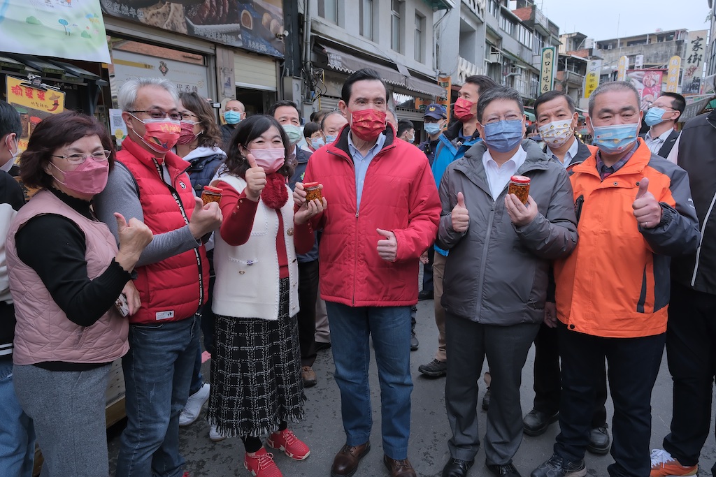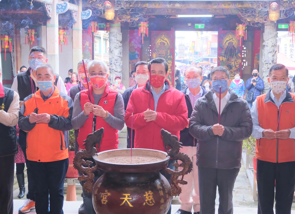 受到疫情影響,今年春節北埔老街人潮比以往少一半,今(2日)大年初二前總統馬英九前往新竹縣北埔鄉,在縣長楊文科、北埔鄉長莊明增陪同下,逛北埔老街並到慈天宮祈福,一路保持以拱手取代握手,與店家、熱情民眾合照,馬總統也贈送300份紅色喜洋洋的虎年口罩給廟方,讓來參拜的民眾迅速索取完畢。