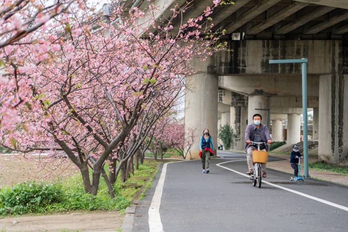 堪稱「正港人」才知道櫻花私房景點,隱身於新竹市頭前溪及溪洲橋中間的左岸自行車道,「左岸櫻花大道」嬌小河津櫻綻放超過100公尺,環保局建議,從中華路左轉中華路一段2巷後,沿著滑輪公園往前行,就能看見粉紅河津櫻花林。