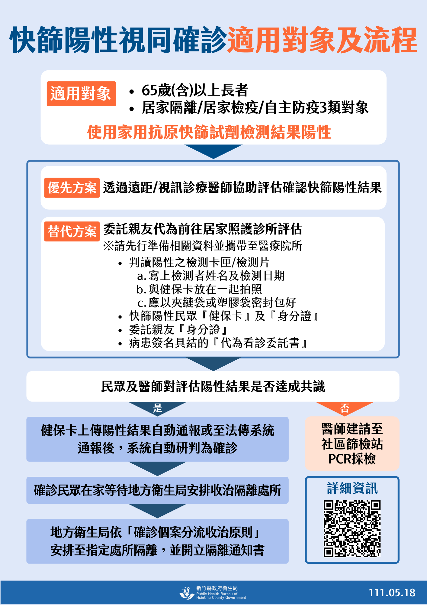 新竹縣醫院、診所、社區篩檢站均提供採檢、診療、領藥、衛教、繳費一站式服務,以便利民眾也落實醫療量能分流。衛生局提醒採檢民眾於採檢完24小時後即可至健保快易通查詢檢驗結果,不需再電話詢問採檢醫院。