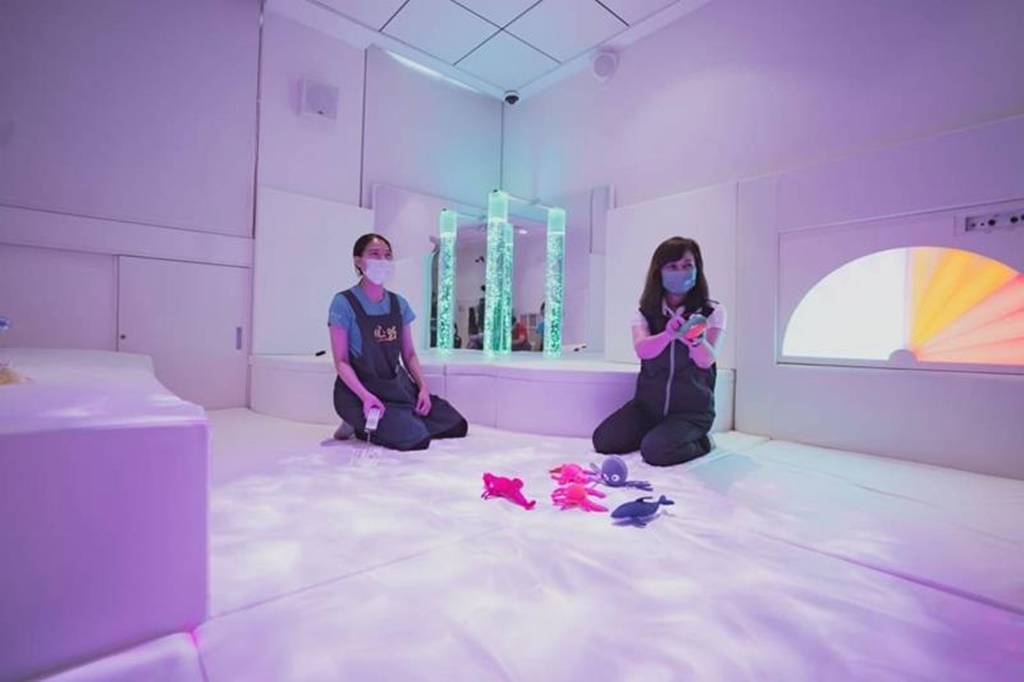 新竹市兒童發展早期療育中心今(111)年2月啟用,每月最高可服務學齡前兒童日間照顧40名,近日投入百萬打造全新療育感官教室,新竹市副市長沈慧虹為孩子開箱。全白空間的「白屋」,利用燈光、聲音營造星空、海洋等,更設有蛋型鞦韆、音樂踏墊、聲控牆,並從英國引進「觸覺板」,提供視覺、聽覺、嗅覺與觸覺多感官刺激,成為孩子體驗與探索的秘密基地。