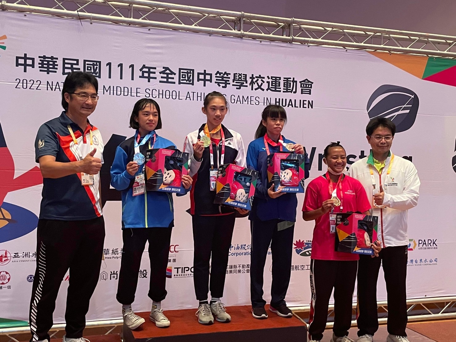 ▲東泰高中學生張嘉妤(左二)在高女組跳高獲得金牌