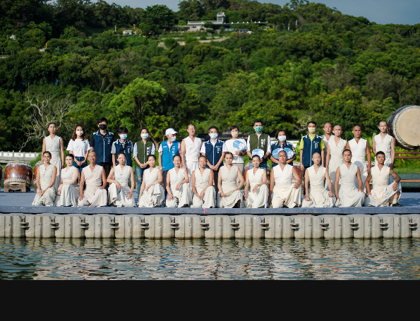 2022新竹市仲夏藝文季第5場表演《鼓聲圓滿》8月13日傍晚在青草湖畔盛大登場,優人神鼓團隊透過出神入化的鼓樂與肢體表演,讓觀眾感受身心靈與藝術共舞的美妙,水上舞台表演也與湖光水色相互輝映,在波光粼粼的湖面上,呈現出安定靜謐的氛圍。現場湧進超過2000名觀眾同樂,陳章賢代理市長表示,仲夏藝文季8月27日、9月3日還有表演,歡迎大家一同參與。