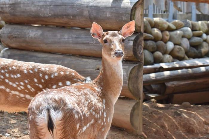 動物園內唯一一隻梅花鹿,是曾接獲通報至民宅救援受困梅花鹿,經檢查發現牠的右前腳疑似踩到陷阱而遭截肢,在園區細心照料,療養後並無大礙,但因為前腳的殘疾已不適合在野外求生,因此園方決定收留牠,提供牠一個可以安穩生活的環境,也增添三隻梅花鹿與牠相伴。