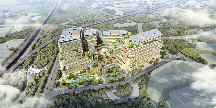 竹科X基地將打造為「園市一體」的新型態「都市型園區」,圖為建築完工模擬圖。