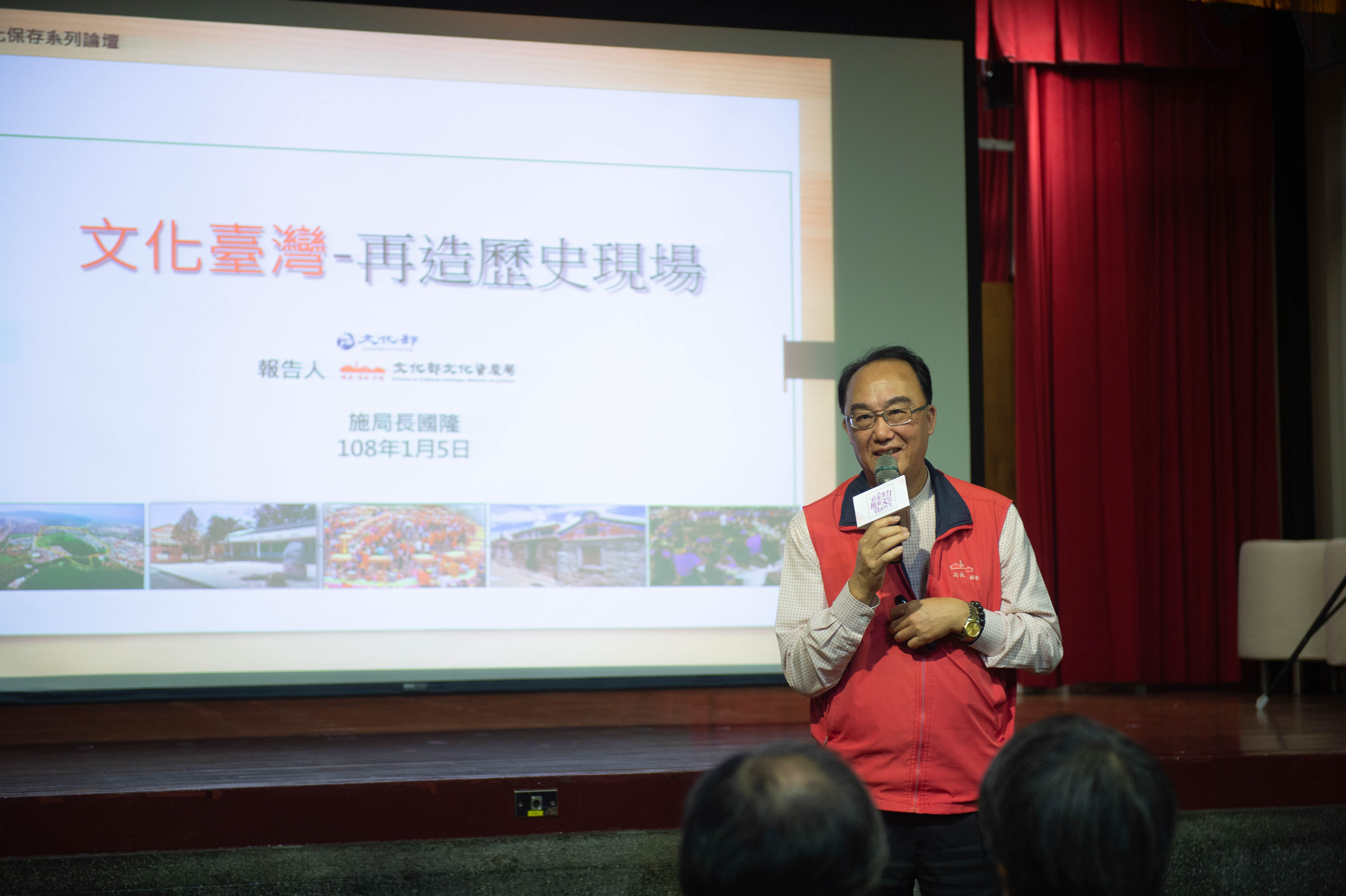 文化資產局施國隆局長表示,「文化臺灣」施政理念即落實文化公民權,透過健全的文化治理公共支持體系,讓文化生態永續、文化扎根。目前文化部已核定19縣市29項計畫,如高雄市「左營舊城見城計畫」、金門縣「瓊林蔡氏千年聚落風華再現」等正在執行中,相信很快就能與大家見面。然而文化資產保存仍然面臨許多挑戰,目前全國有形文化資產指定登錄2,442處、無形文化資產登錄660案,是各級政府、公民團體、公私協力努力促成。為促進公私有文化資產保存,施局長表示,文化部將加強協助,獎勵私有文化資產保存,鼓勵企業捐助,擴大引入民間組織資源。