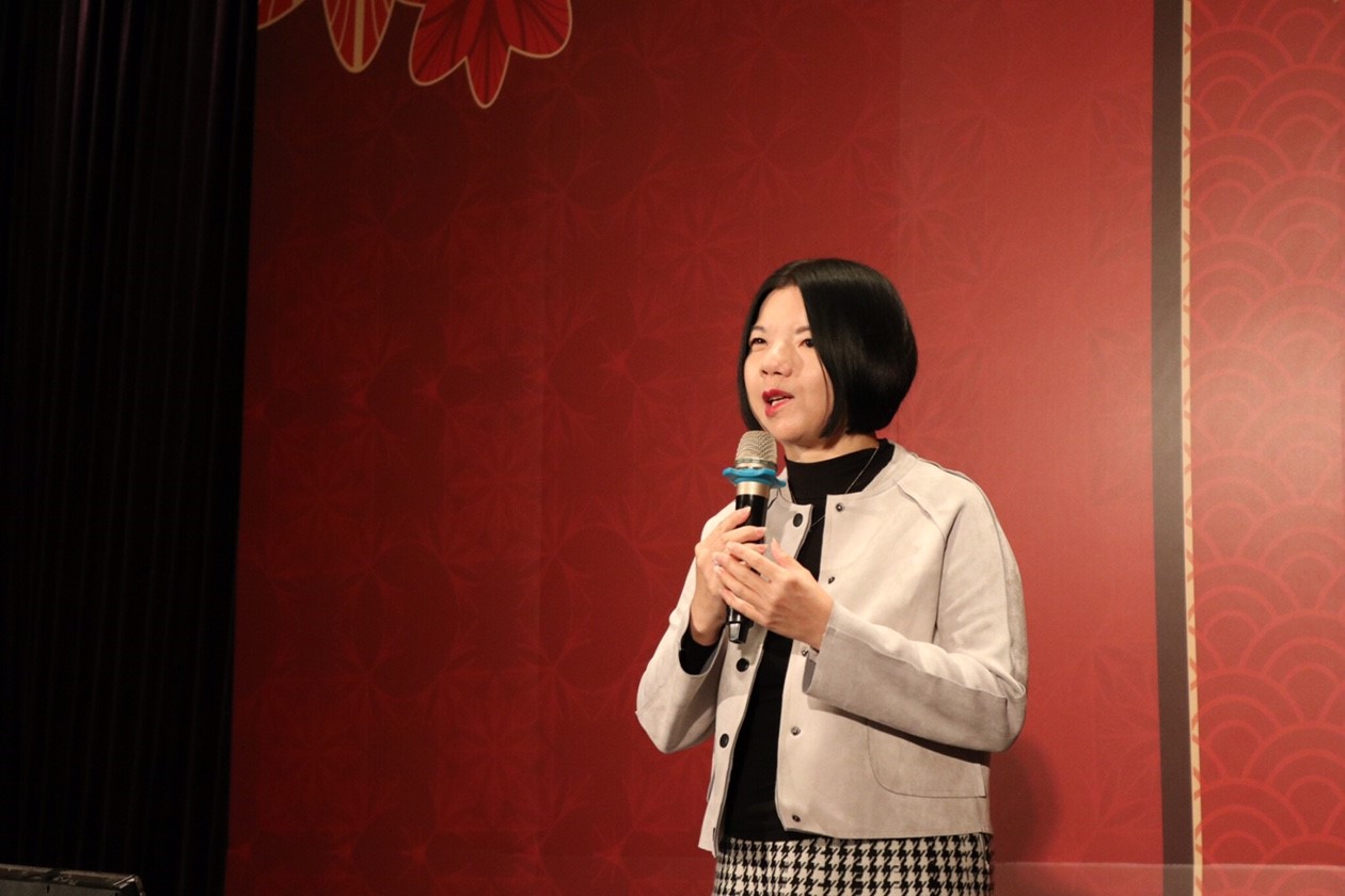 中華民國藝評人協會謝佩霓理事長於尾牙中致詞