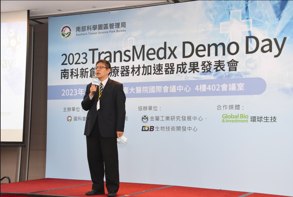 南科TransMedx加速器自108年啟動至今,逐步建構完善的南科精準健康創新生態圈,協助新創於園區落地生根,及挹注新創豐沛的國內外資源,為展現南科新創醫材成果,國家科學及技術委員會南部科學園區管理局攜手金屬工業研究發展中心及生物技術開發中心於今(30)日假臺大醫院國際會議中心舉辦「2023 TransMedx Demo Day 南科新創醫療器材加速器創投媒合暨成果發表會」,會中邀請美國專業顧問公司Frost & Sullivan專業經理人Dr Rishi Pathak、生技中心柯淑芬副主任進行專題演講分析全球生醫市場及應用案例分享。華南金創投、兆豐創投、和鼎資產、凱薩投資、智揚管顧、碩聯資本等創投機構等及國內知名大廠共同參與,並由7家新創進行成果發表及與各創投機構媒合。