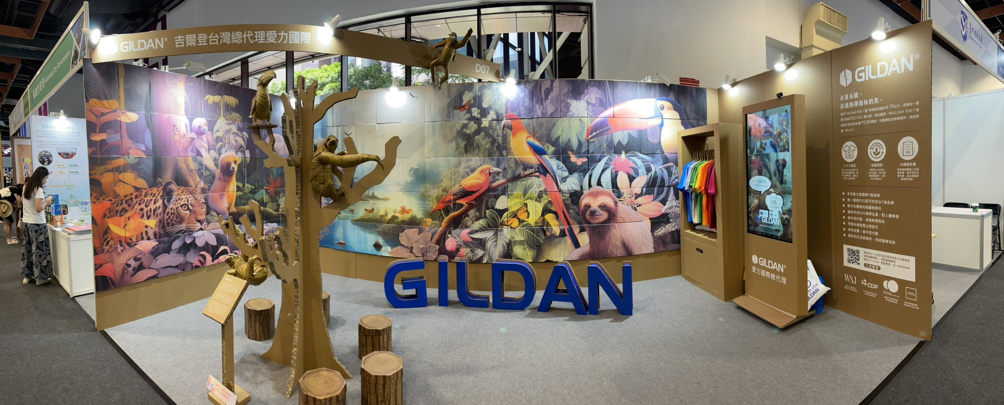 榮獲2023亞太永續行動博覽會綠設計獎銅牌的「吉爾登永續服裝館」,是來自美國永續棉T的領導品牌GILDAN吉爾登首次參展。