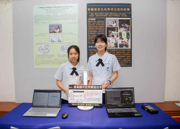 今日發表會共展出7項護眼保健的研究成果,包含「教室照明對投影幕可觀看時間及清晰度的影響」、「電腦螢幕光色對專注度的影響」、「電腦螢幕夜間模式對可觀看時間的影響」、「藍光對眨眼次數的影響:以使用電腦螢幕觀看影片為例」、「墨鏡顏色對護眼效果與觀看清晰度的影響」、「防藍光隱形眼鏡的護眼效果」、「暗適應對試讀亮度的影響」等。