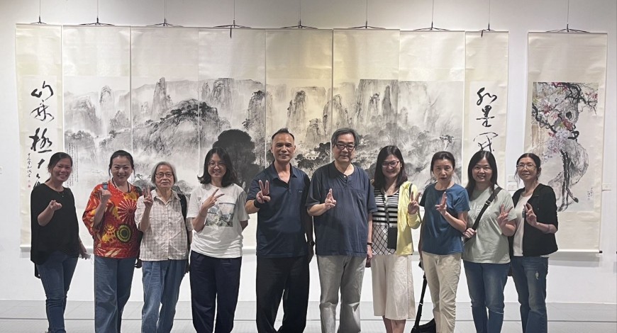 范乾海1953年出生於苗栗,師從嶺南派第二代楊善深大師,他稟承「折衷中西,融匯古今」的畫派宗旨,帶領新竹一群熱愛塗鴉的樂齡學生勾勒落雁平沙、小橋流水,也摹寫枝頭鳥雀、芒草野花等,試圖藉一枝墨筆將與大自然的艶遇,帶到眾人面前。此次師生聯展,范乾海也帶來六聯屏巨幅山水,亦能欣賞到眾多學生不同風格、極具個性的繪畫作品,期望透過展覽與大家共同學習與成長。