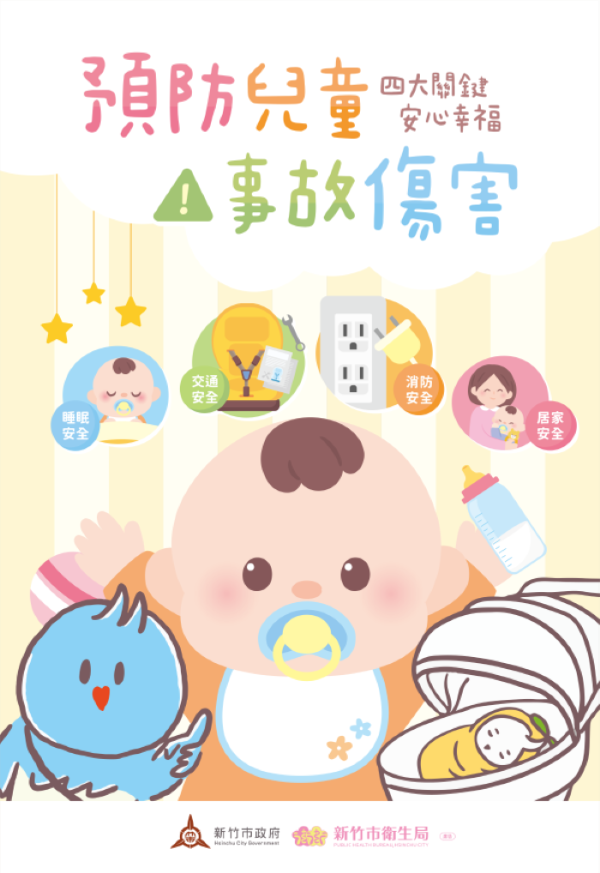 衛生局說明,為加強竹市兒童事故傷害的預防宣導,幼兒的健康與安全需要大家共同關注,提醒家長注意家中窗戶旁勿放置攀爬物品,窗台高度需大於110公分;插座應設防護裝置,避免孩童接觸電線;寶寶仰睡最安全,防止窒息意外;家具尖角應做圓角處理,避免幼兒受傷;維護乘車安全,後座加裝兒童安全座椅。提醒家長們守護孩子平安出行,共同保衛幼兒快樂平安成長。