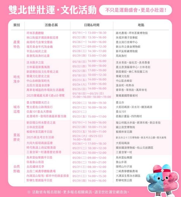 世壯運參加者限定文化活動3/20報名開跑 深度暢遊臺北 發掘城市魅力