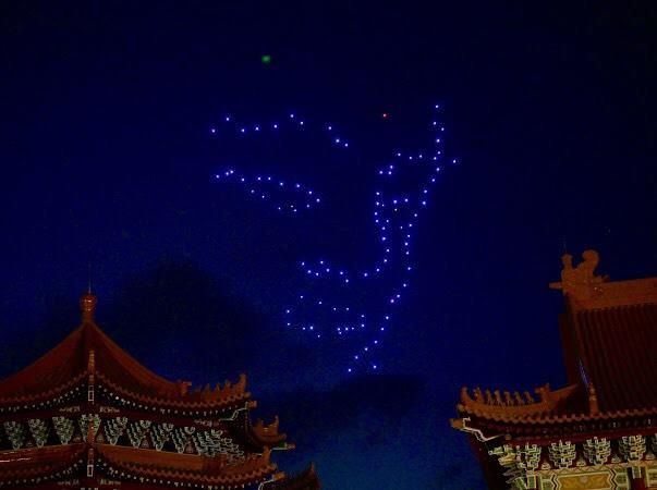 4月26日台南鹿耳門聖母廟人聲鼎沸,數千人高舉著手機、相機對準夜空,屏息專注一刻不敢鬆懈,深怕一個閃神就錯過精彩瞬間,因為媽祖就出現在聖母廟的大殿上空,隨著五彩燈光的變化,一會兒以Q版的可愛形象現身,不到幾秒鐘又以莊嚴慈藹的面容俯瞰眾生,這不是媽祖顯靈,而是「南科智慧機器人自造基地」所培育出的無人機團隊,今年以100台無人機群飛的技術,在農曆3月23日媽祖誕辰的前夕,以高科技的方式為媽祖娘娘暖壽,這也是台灣第一支100台國人開發的大型機隊首次亮相,就引爆各界關注。