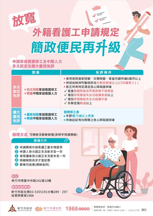 竹市落實簡政便民服務 即日起3族群申請家庭看護移工免評估