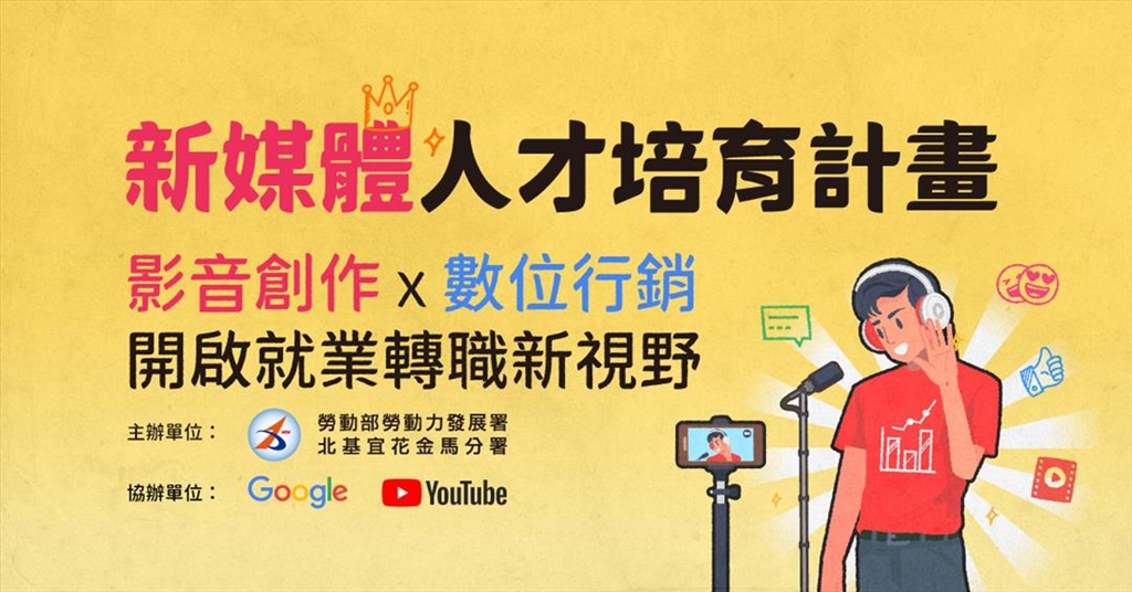 勞發署北分署攜手Google、YouTube 新媒體人才培育課程10月4日開始報名