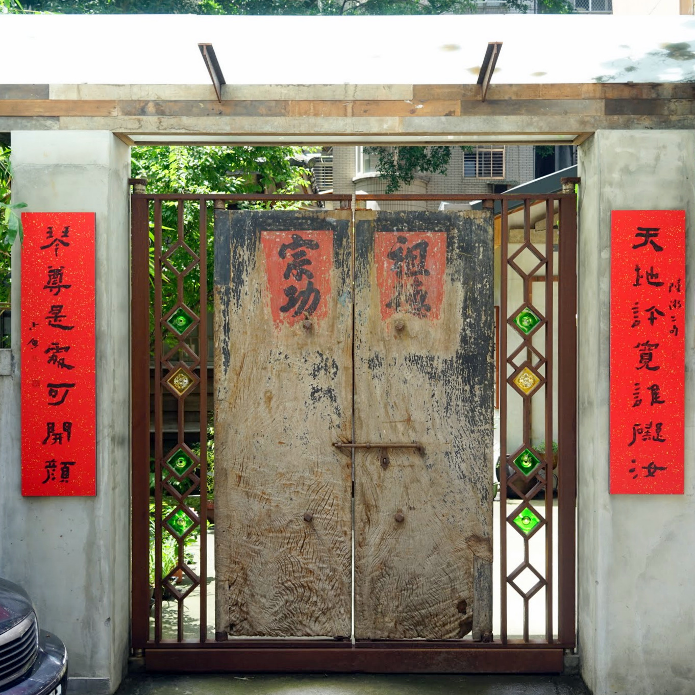 青田茶館傳統漢式三合院的大門,日式的木屋維護良好, 時有西洋畫作及各種特色的展覽。