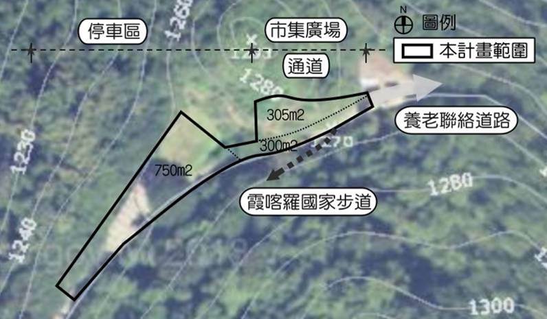交旅處表示,「霞喀羅古道」為全國第一個國家級步道,在清泉跟秀巒之間,四季走步道能欣賞到大自然風貌,受到登山客的喜愛,每逢賞花季必塞車,停車動線混亂。本次工程計畫在步道的養老部落段登山口,針對市集廣場、停車區、公廁整頓改造,建構友善步道,並導入休憩與服務空間機能,滿足登山客健行後的需求,活絡地方經濟,面積共1355平方公尺,總經費共700萬元,預計4月發包,12月完工。未來也將與地方團體討論市集廣場的販售與經營方式,帶動地方產業發展,並配合公所建設賞楓期計畫,提供眺景休憩或是提供導覽解說服務等,豐富遊程體驗。