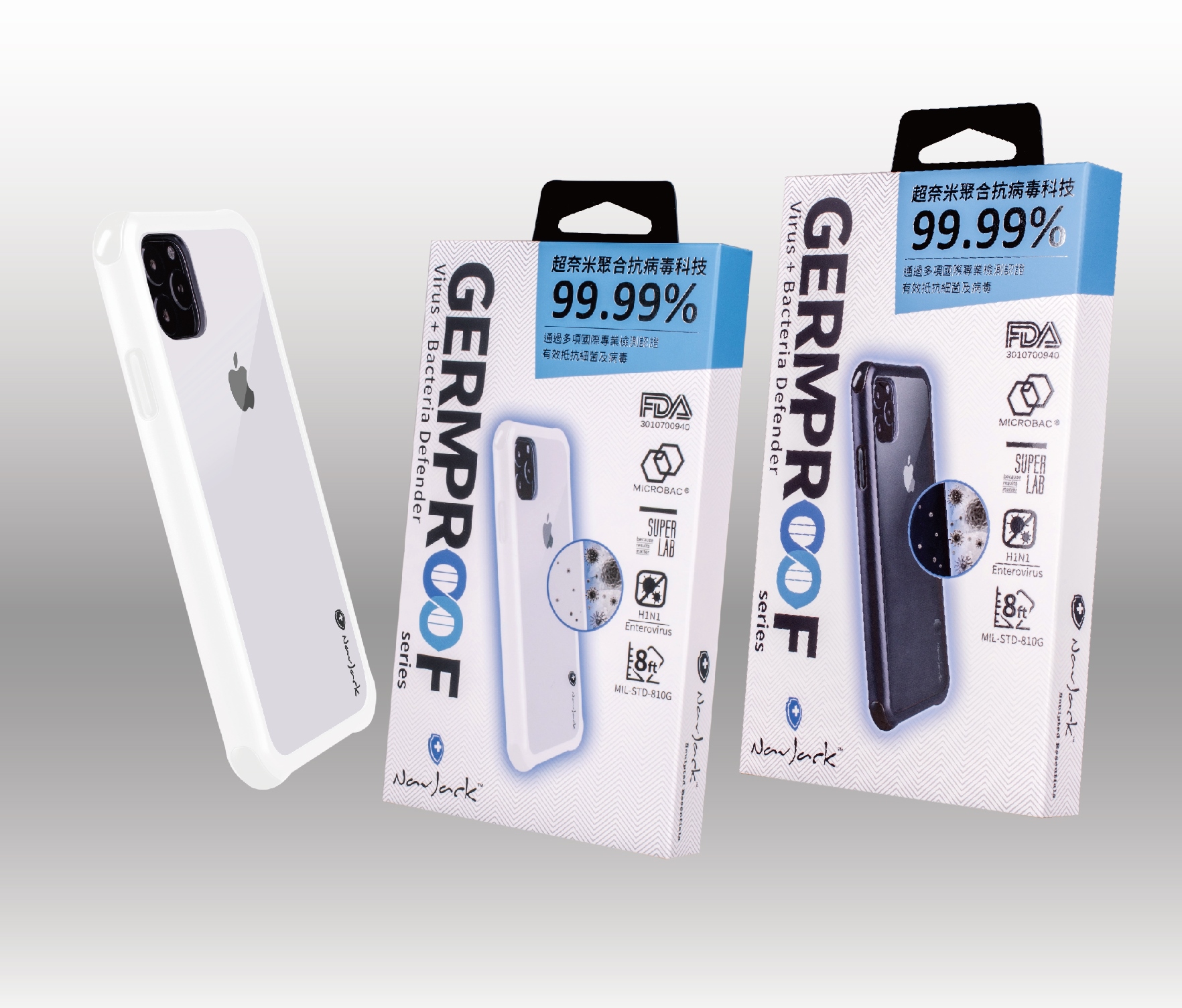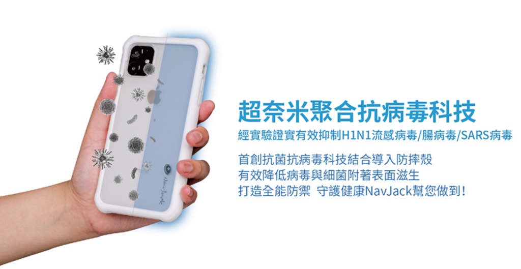 台灣知名手機殼配件NavJack不但研發推出「超奈米聚合抗病毒科技」首創抗菌的iPhone防摔殼,將新型奈米複合材料結合導入於產品具有抑制吸附在表面的病菌活性,使用者不需再每日重複消毒也省下不少時間和力氣,滿足現今消費者求快又方便的需求。