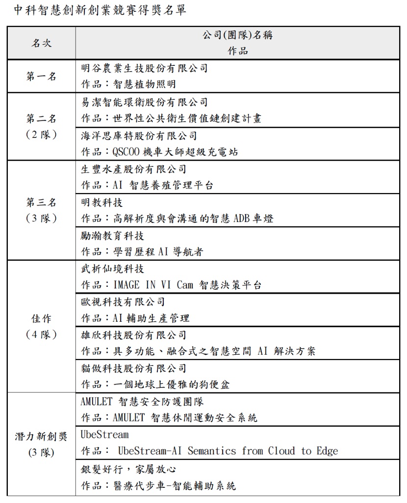 中科管理局表示,為扶植優秀潛力新創團隊,建構中台灣創新創業生態系,決賽評選出之優勝隊伍,後續將由中科智慧機器人自造基地加速器透過系列輔導機制進一步孵化並與產業深化鏈結,有效銜接新創與業界「關鍵一哩路」。