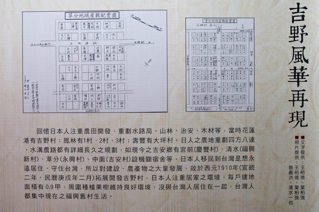 花蓮壽豐鄉豐田村是日本時代的移民中心,說明除了各族原住民族是最早定居花蓮的外,第一代的移民是來自日本的移民,分布在花蓮市、吉安、壽豐、豐田、鳳林、瑞穗和富里等鄉鎮。戰後,來自新竹、苗栗和桃園的客家人是第二波移民。接著是1949年大陸省籍軍民的移民。