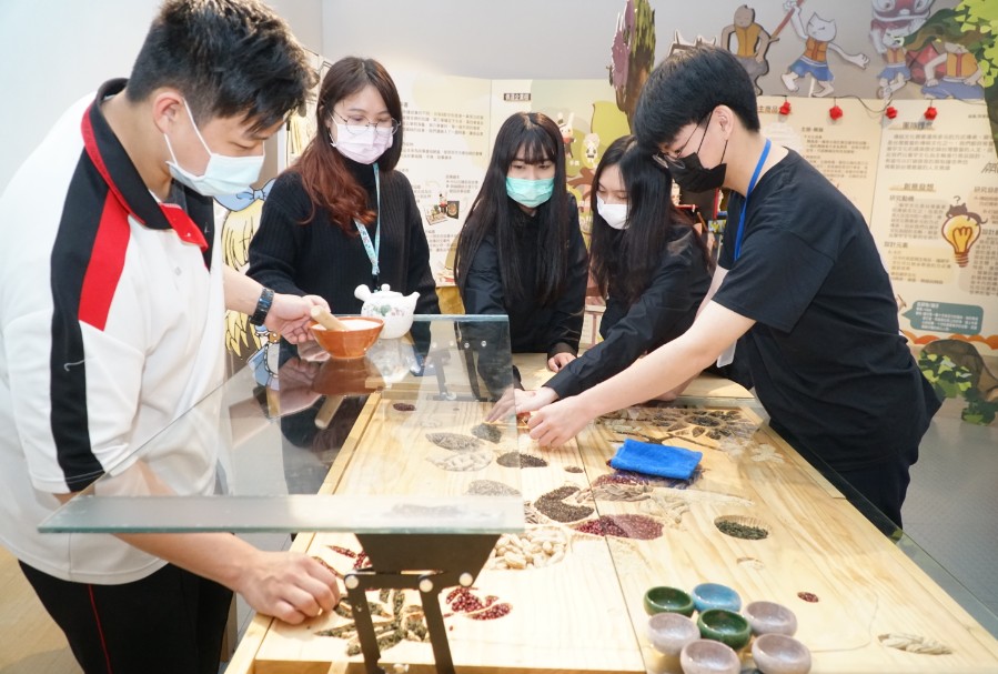 在客家文化方面,學生考慮到製作擂茶,需要準備許多備料,芝麻、花生等原料,不免手忙腳亂,便製作了一張「擂茶桌」,光是3D建置模型就花了一個月,當使用者做擂茶,只要掀開桌子上方玻璃層,拿出桌內備料研磨,一壺熱騰騰的擂茶就完成,也將客家傳統美德「好客之道」充分展現。