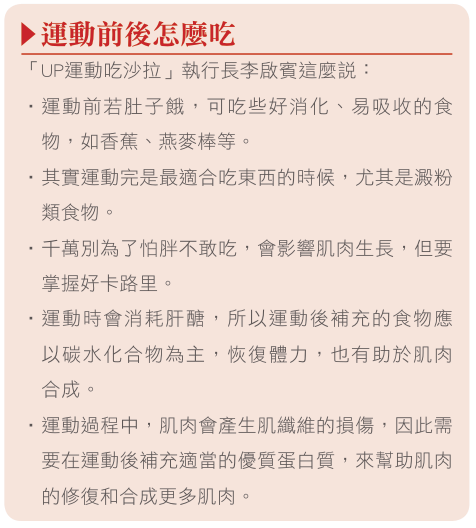 熱愛運動的執行長李啟賓,是「UP運動吃沙拉」的最佳代言人。