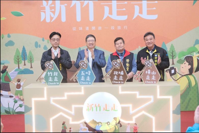 新竹縣政府持續推動「新竹走走」旅遊品牌,透過「循味」概念帶領旅人探索新竹縣的獨特香氣與文化,今年推出「五峰走走」、「北埔走走」、「橫山走走」及「竹北走走」全新四條遊程,並攜手在地優質旅宿業者,提供限量100名的1000元住宿補助,鼓勵旅客多停留一晚,3月5日舉辦宣傳記者會,縣長楊文科、議員等共同點亮「氣味旅館」招牌,宣布4條路線即日起開放報名。