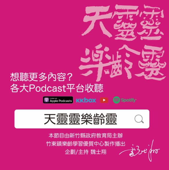 本節目將於每週五在Apple、Spotify、SoundOn等各大串流平台上架,更多資訊請上「新竹縣政府樂齡學習中心專屬粉絲團」Facebook 粉絲專頁(https://www.facebook.com/Hsinchulearning/)查詢。
