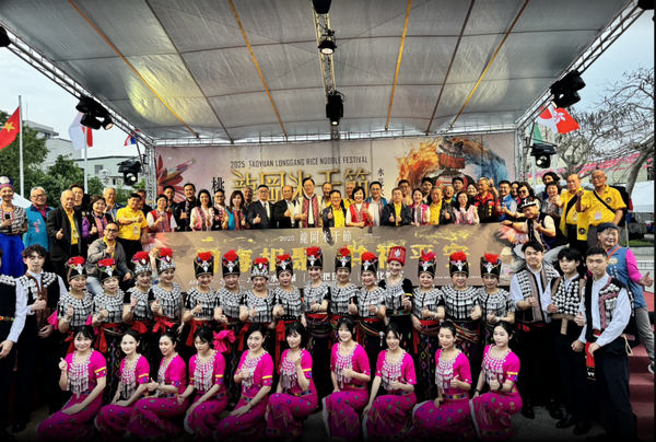 2025桃園龍岡米干節將於4月19日至27日熱鬧登場,今(12)日辦理活動記者會,也適逢「世界緬僑聯誼大會」首度在桃園舉行,來自美國、泰國、緬甸、澳洲、香港、澳門等地超過300位緬華僑胞齊聚龍岡,與桃園市長張善政及各界貴賓共襄盛舉為本屆米干節揭開序幕,以象徵祝福的金粉傳遞「四海相聚,共祈平安」的信念,為緬甸祈福,同時邀請更多民眾一同走進龍岡,認識異域文化、品嚐金三角美食。