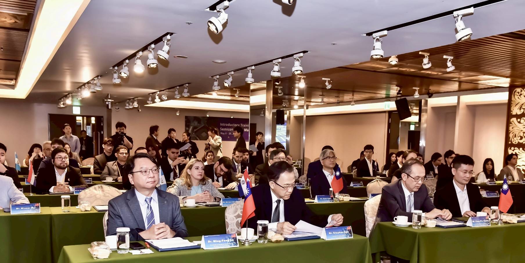 開訓典禮邀請外交部拉美司張俊彬總領事出席,並由國合會副秘書長李志宏主持,李副秘書長開訓典禮致詞時表示,半導體是台灣的名片,配合政府外交政策,將台灣半導體產業發展過程,不管是技術或理論,與明新科大、陽明交大合作,提供來自中南美洲友邦的學員最優質的訓練課程,為兩國發展半導體產業奠基。