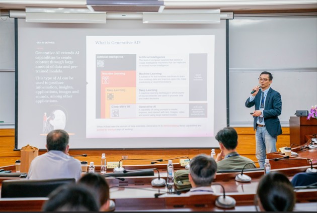 研討會邀請資誠企業管理顧問公司樓大峰協理,以「運用生成式AI來加速實現商業價值」為題進行專題演講。生成式AI對於銀行業不只是一股科技熱潮,亦深刻地改變銀行的營運模式。透過生成式AI導入智慧客服系統以全天候即時回應客戶需求以大幅提升客戶服務效率與強化體驗。同時,AI可自動生成合約、報告與審查文件,藉以簡化內部流程以及節省人力。此外,可以透過生成式AI以分析巨量資料並洞察客戶行為,協助銀行打造個人化金融產品與行銷策略,藉此提升交叉銷售機會與客戶忠誠度,創造更高的最終商業價值。