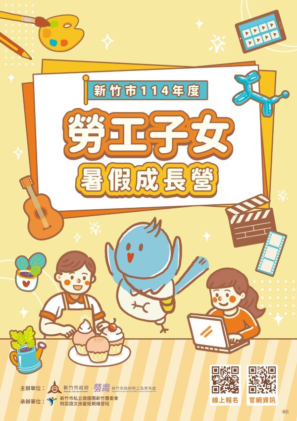 新竹市政府關注勞工在職進修與家庭教育需求,打造友善勞動環境與推動多元學習政策,持續推出「勞工學苑研習課程」與「勞工子女暑假成長營」,期盼透過實用的專業研習課程與多元化的營隊設計,協助勞工朋友提升職場即戰力,拓展第二專長,同時也讓孩子在暑假期間持續學習、啟發潛能。市府勞青處表示,相關課程將於6月13日開放線上報名,誠摰邀請勞工朋友與子女一同參與,共度充實且有收穫的暑期時光。