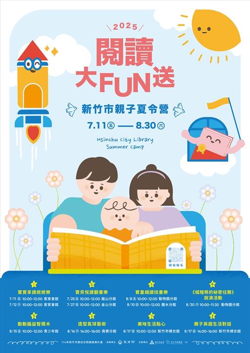 迎接暑假來臨,新竹市圖書館於今夏規劃一系列以親子共讀為主軸的閱讀推廣活動,包含主題書展、集點闖關、說故事時間與桌遊體驗,歡迎大小朋友們走進圖書館,開啟一段知識與趣味兼具的夏日旅程。