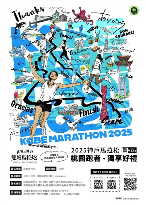 桃園市政府觀光旅遊局與日本神戶觀光局自2023年簽署觀光交流合作備忘錄(MOU)後,即展開多項交流合作。今年4月兩地機場開啟直飛航班,更有效縮短交通時間,桃園與神戶互訪更便利。「桃園X神戶雙城馬拉松」是兩市推廣運動觀光合作的重要項目,除互送雙方市民參賽,今年桃園市政府觀光旅遊局也將持續於神戶馬拉松報到處設攤向2萬名跑者推廣桃園觀光,並邀請日本民眾參加今年12月7日舉辦的2025桃園石門水庫楓半馬,進行雙向交流。
