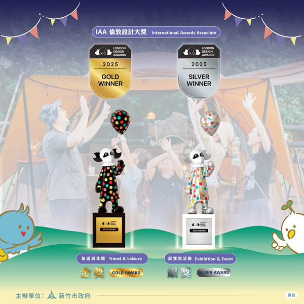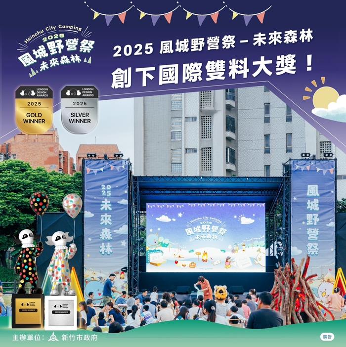 城市美感行銷國際再添佳績!新竹市政府今(114)年5月,「城市星光露營」為主題,打造全新指標性戶外活動《2025風城野營祭—未來森林》,首次辦理即成功榮獲「IAA倫敦設計大獎 (London Design Awards)」雙料肯定,在「概念設計-旅遊與休閒」類別奪下金獎、「概念設計-展覽與活動」類別獲頒銀獎,展現竹市在城市行銷與創意策展上的國際實力與美學高度。