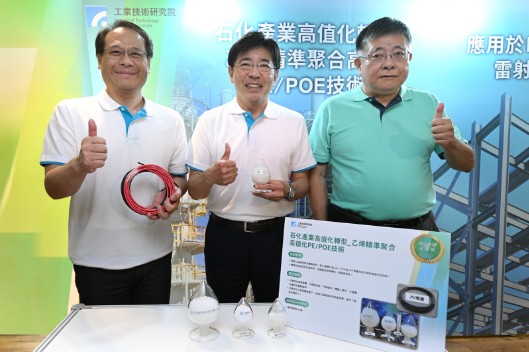 國內乙烯製成塑膠多用於民生用途,關鍵應用如綠電電纜、機器人零件與半導體仍仰賴進口。為提升乙烯衍生材料自主性,工研院開發三組高效聚合觸媒系統:一、高立體障礙鉻觸媒結合無氯助觸媒,提升1-己烯與1-辛烯轉換率並降低腐蝕風險;二、高溶解度茂金屬與錋金屬助觸媒設計,可調控POE密度與彈性,降低金屬殘留;三、單點鈦金屬觸媒可製備低纏繞、高分子量聚乙烯,適合高強度纖維開發。技術已與國內石化企業合作,加速在地化量產,強化乙烯高值材料供應鏈與下游競爭力。