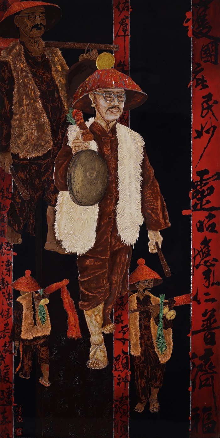 2020 第十七屆雲林文化藝術獎 工藝類 第二名〈媽祖文化意象-躦轎腳〉 媒材:天然漆、蛋殼、木板 、布 120×60cm / 2020 年