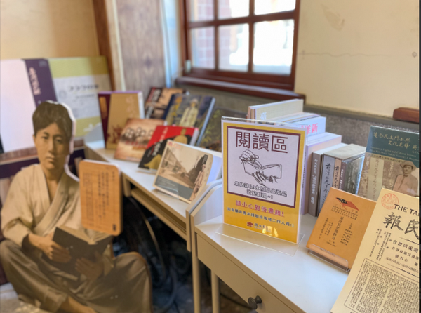 除主題展櫃外,展場另設有「閱讀區」,此區匯集最齊全的蔣渭水相關著作,包括刊載其文章的《臺灣民報》復刻本、《蔣渭水先生全集》及多部研究著作,民眾皆可現場自由翻閱,深入理解他的理念與經歷。緊鄰的「互動區」則設有「文協記憶.時代群像拼圖」,拼圖圖像取材自蔣渭水文化基金會出版的《蔣渭水畫影集》,將蔣渭水與臺灣文化協會史蹟的藝術圖像進行拆分,邀請民眾一同參與拼貼、合影互動,讓歷史不只是閱讀與觀看,也成為可以觸碰、參與的公共記憶。