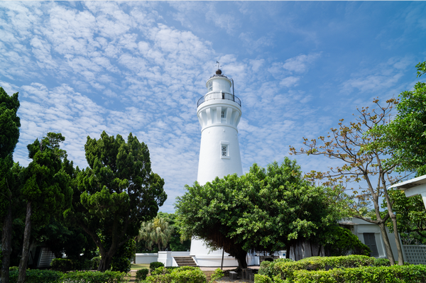 而白沙岬燈塔位於觀音海岸,在台南國聖燈塔未興建前,曾是台灣本島最西邊的燈塔,週邊設有環形步道,還可順遊觀音濱海遊憩區。白沙岬雪白的塔身,在蔚藍海天之間顯得更為耀眼,西元1901年點燈啟用後,在日治時期就已是台灣著名勝景,歷經百年以上的歲月洗禮,在2001年獲選入列文建會「台灣歷史建築百景」,燈塔建築本體、圍牆與日治時期的日晷儀,隔年公告成為桃園第一座縣定古蹟,2021年5月公告為桃園第二座國定古蹟,是目前保存最完整的日治初期燈塔。這座臺灣海峽的明燈,周遭環境整理得十分幽靜,除了有小橋流水、稻田與池塘,還有木棧道與清涼曲徑,燈塔本身就是入鏡的好背景,自行車可停在路邊再步行進入園區。